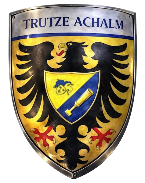 Unerschrockene Sassen der Porta Hercyniae schlugen am Fuße des Reutlinger Hausberges „Achalm“ ein Feldlager auf. Daraus ging a.U. 99 die Trutze Achalm als 338. schlaraffisches Reych mit der Achalm-Burg hervor. Ein dreifaches, Echaz aufwühlendes „Lulu“ diesen mutigen Sassen: